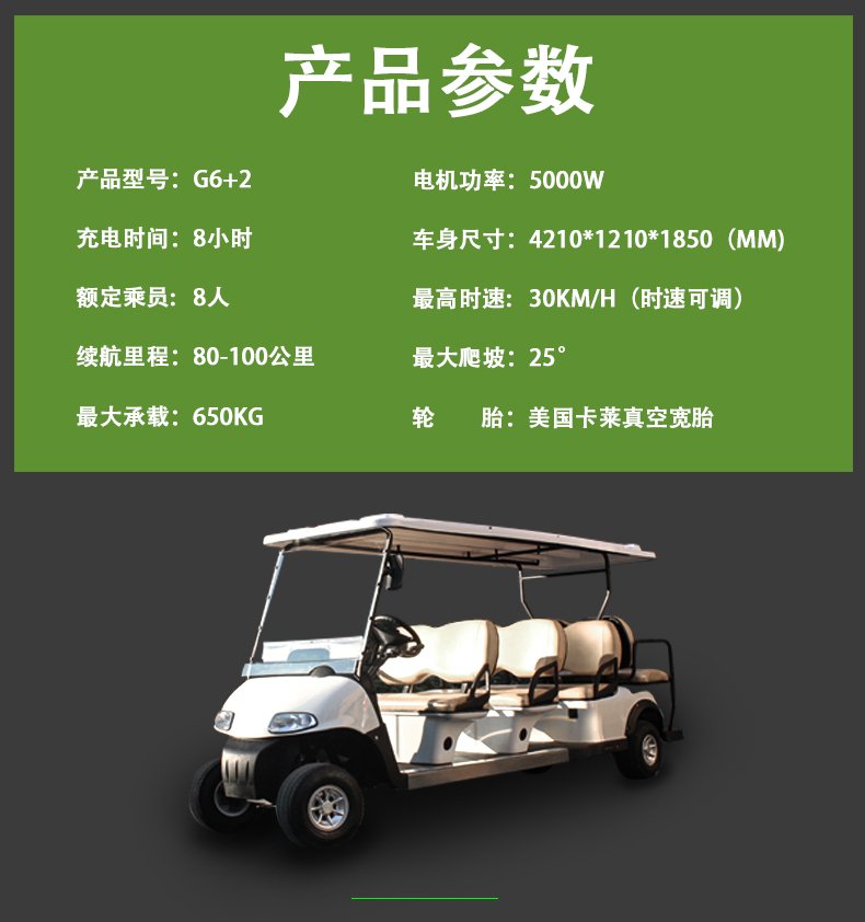 G6+2 電動觀光車高爾夫球車四輪電瓶看房車度假村